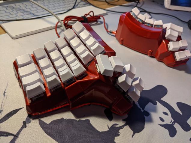 I’m currently at 60wpm on it and improving, my muscle memory adjusted to using Emacs with it. My back pains are slightly better, but there are many variables that contribute to it, so I can’t attribute it 100% to a split keyboard. Now, I’m really tempted to build one with an integrated trackball, but for now, it’s enough.